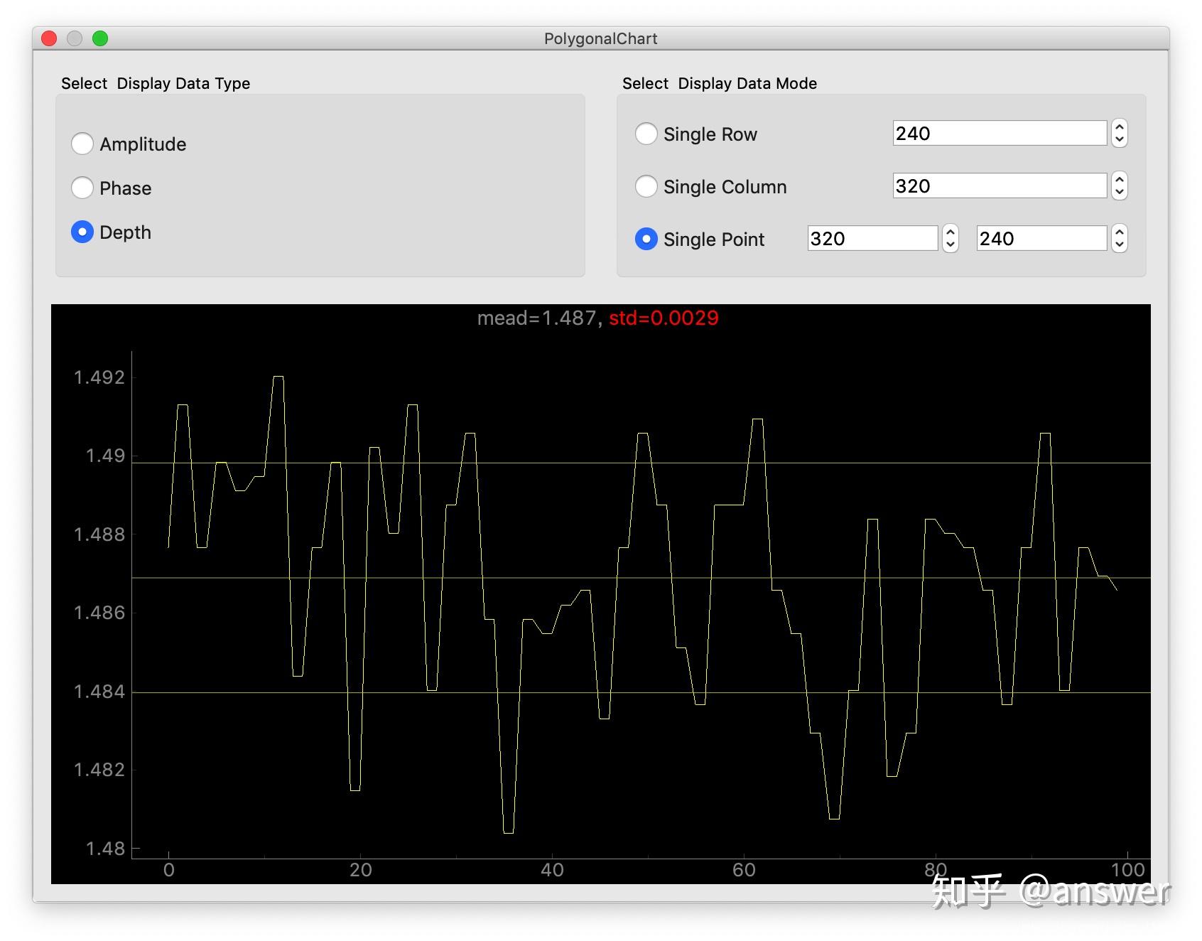 实践中,我们采用最小二乘法来得到综合芯片温飘和光源温飘的最佳拟合参数。操作模式为热箱中采集芯片和光源的问题,并同时记录采集到的phase,形成3列数据,可以导入到其他工具或者自己编程来得到2个数字系数。随后进行补偿的时候可以根据参考点的温度和当前温度算出和温差,然后就可以得到这个温差下应该补偿多少深度值了。